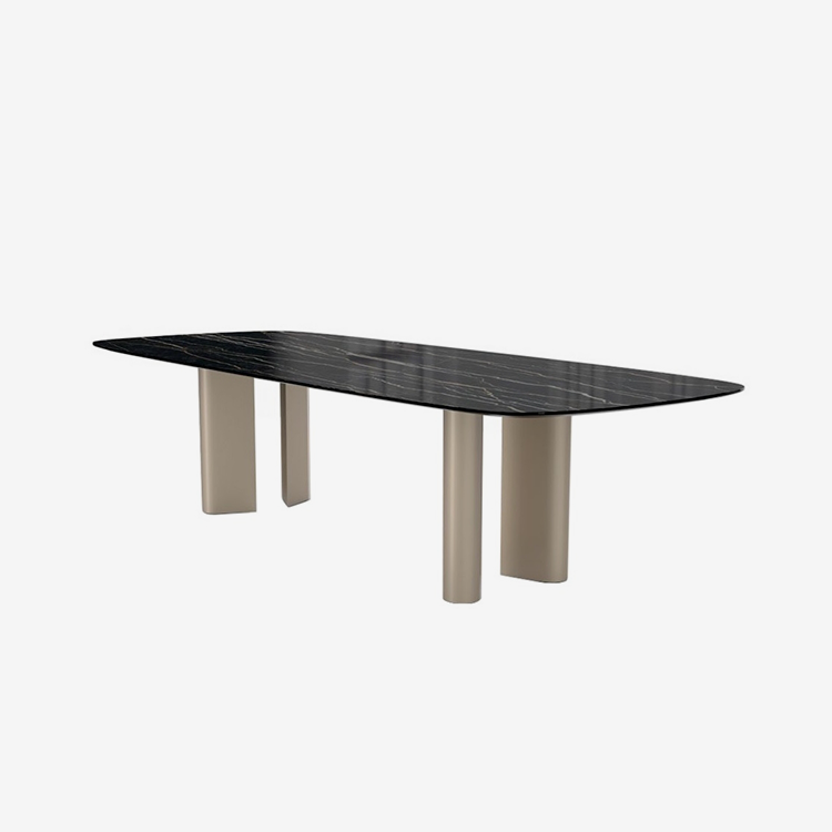 Geometric은 보는관점에 따라 다리 모양이 변하는 테이블로, 디자이너 Alain Gilles의 창의적인 아이디어가 돋보입니다. 카멜레온 같은 실루엣을 기반으로하는 컨셉으로 물방울 형태의 4개 다리를 보는 각도에 따라 둥글고 두껍게, 날카롭고 가늘게 보이도록 만들면서 부드럽게 둥그스런 직사각형·원형 상판과 조화를 이루는 시각적 변형 효과로 눈길을 사로잡을 것입니다. 마감 자재에 따라 차이가 있지만 둥그스런 직사각형 상판은 길이 2 / 2.5 / 2.8 / 3m 까지 가능하며, 원형 상판은 지름 1.2 / 1.4 / 1.6 / 1.8m 까지 가능합니다. 다른 테이블과 달리 Geometric 테이블은 조형적으로 보이게 하는 테라코타 효과의 특수점토 마감(hand spatulated clay)으로 적용할 수도 있습니다.