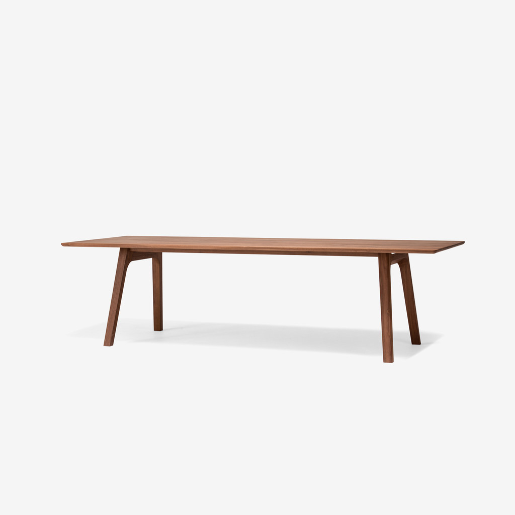 비행기로부터 모티브를 가져온 Ten 시리즈는 건축적 라인의 프레임이 주는 슬림함과 경쾌함이 특징입니다. 직선과 사선의 힘과 곡선의 부드러움이 어우러진 디자인으로 전체적으로 세련되고 경쾌한 이미지를 전달하고 있습니다. 테이블에서 그 이미지를 생동감 있게 느낄 수 있으며, 살짝 경사져 라운드 처리된 상판 에지와 사선의 다리 가공 디테일에서 그 세세한 디자인을 확인할 수 있습니다. 길이 2700/2400/2100/1800/1600 mm 의 솔리드 우드 테이블로 Walnut과 Ash 중 선택할 수 있으며, 별도로 3가지 타입의 익스텐션 테이블도 있습니다.