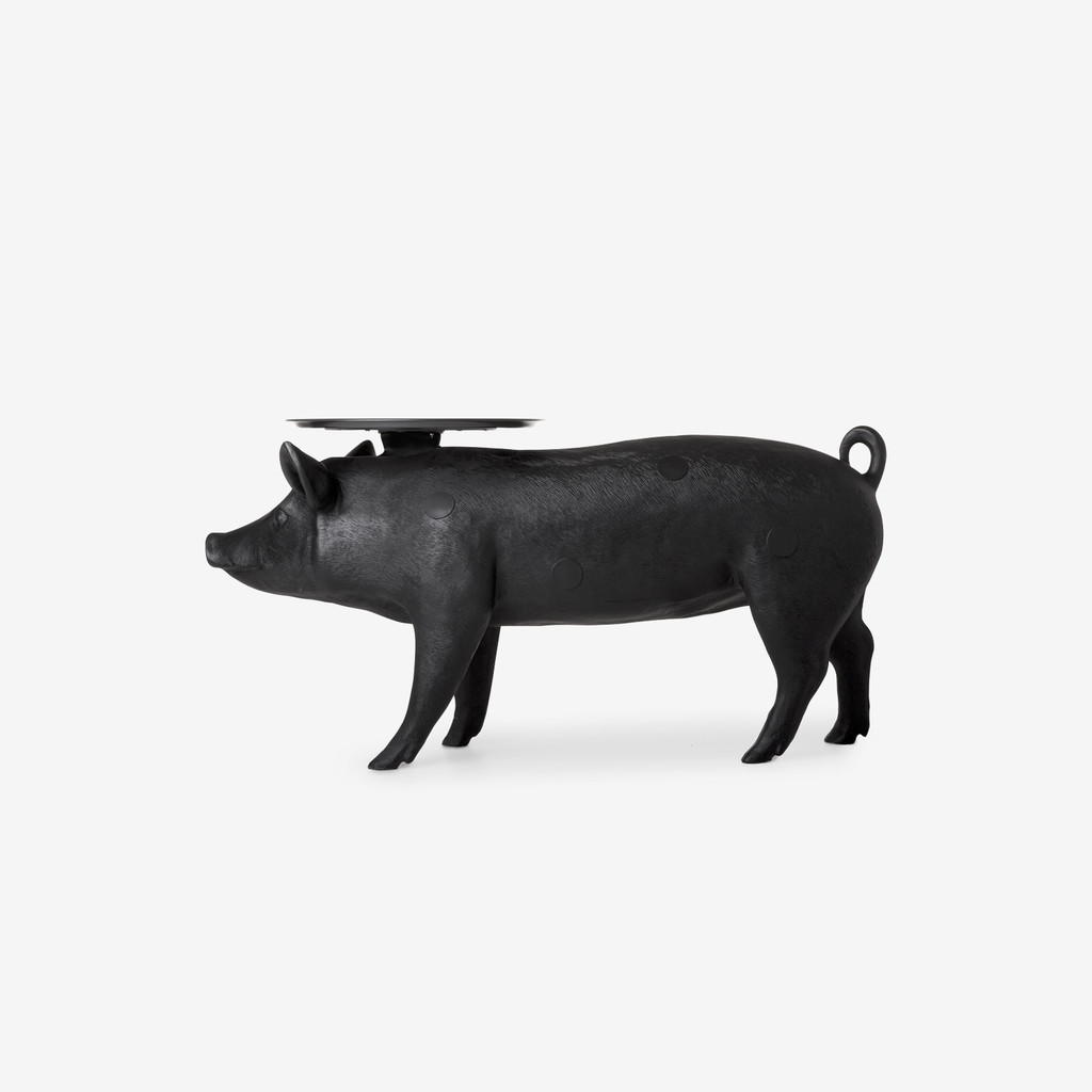 Pig table은 동물을 컨셉으로한 Moooi의 Animal Furniture시리즈 중 하나로서 Horse Lamp, Rabbit Lamp와 함께 디자인그룹 프론트의 작품입니다. 창의적이고 독특한 디자인으로 잘 알려진 프론트가 Moooi의 아트디렉터 마르셀 반더스의 요청으로 디자인하게 된 동물시리즈 가구는 실제 동물 크기와 동일한 가구들이 판타지한 느낌을 불러 일으키며 Moooi의 베스트 제품으로 자리매김 하였습니다. 돼지가 손님을 접대 한다는 상상속에서 출발한 Pig table은 돼지의 외형과 외모를 그대로하고 머리위에 큰 접시를 이고 있는 모습이 매우 인상적입니다. 포인트용 가구로 놓아도 좋은 피그 테이블은 웰즈에서 만나보실 수 있습니다.