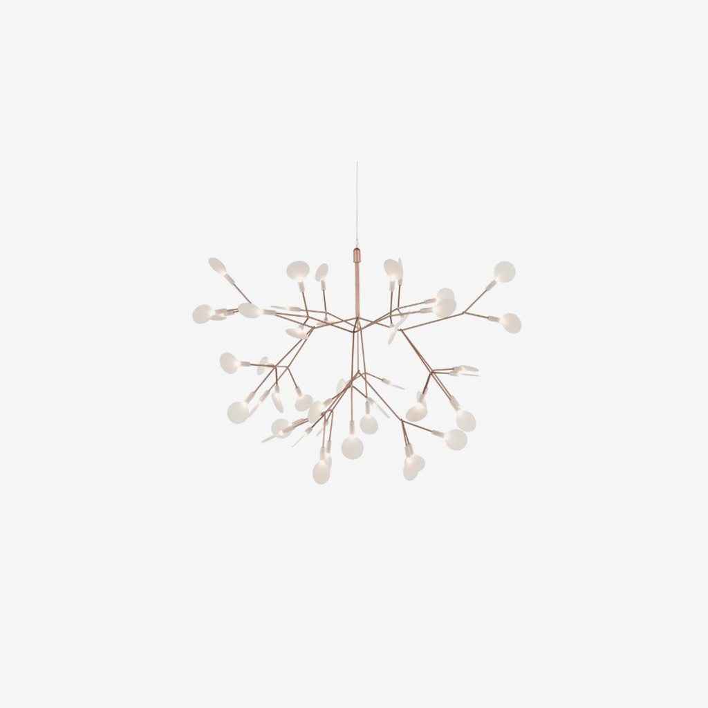 Heracleum(어수리 나무)의 잎과 줄기의 구조에서 영감을 받아 디자인된 LED조명 Heracleum은 일반적인 와이어 및 램프로는 표현할 수 없는 디테일한 부분을 극세 와이어와 램프를 이용하여 제작 되었습니다. 전도체에 막을 입히는 기술을 이용하여 만들어진 디자인 작품으로서의 아름다움 뿐만 아니라, 기술적인 부분에서도 놀랄만한 특징을 가지고있는 조명입니다. 지름 980mm 크기의 Heracleum과 지름 720mm Heracleum Small이 있으며, 니켈과 구리 2가지 마감중에서 선택할 수 있습니다.