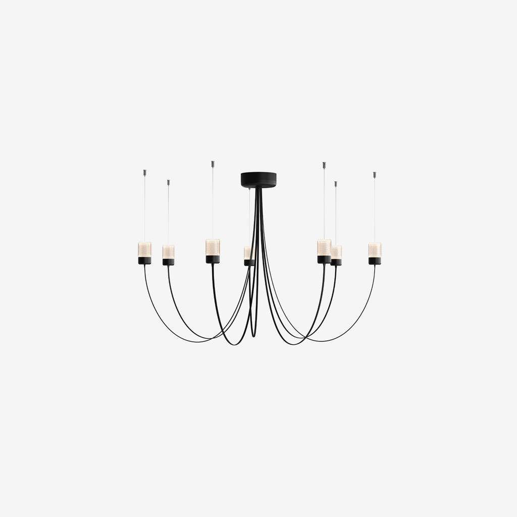 예전의 샹들리에를 다시 상상하게 하는 Gravity Chandelier는 강성을 탄성으로 바꾸는 것에서 영감을 얻어 디자인된 서스펜션 조명으로, 현대적 샹들리에의 새로운 정의를 보여주고 있습니다. 플렉시블한 팔-flat cable로 샹들리에의 지름을 정하고 빛이 어디에 위치하는지를 선택하지만, 떠있는 조명들은 중력에 의해 형성된 자연적인 곡선을 만들어냅니다. Gravity Chandelier는 팔의 수량에 따라 Gravity Chandelier 5와 Gravity Chandelier 7 두가지 크기가 있습니다.