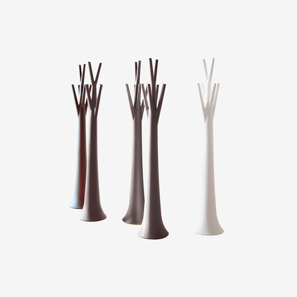 매끈한 폴리에틸렌 플라스틱 소재로 만든 스탠드형 옷걸이 ‘Tree(트리)’입니다. 나무 모양으로 상부의 나뭇가지에 옷, 모자나 백 등을 걸어 사용하며, 가지를 돌려서 뺄 수도 있습니다. Mat 타입과 도자 마감된 Lacquered(glossy) 타입, 내부에 조명이 들어있는 타입 ‘Tree Light’도 있으며, Mat 타입은 옥 외 공간에서도 사용 가능합니다.